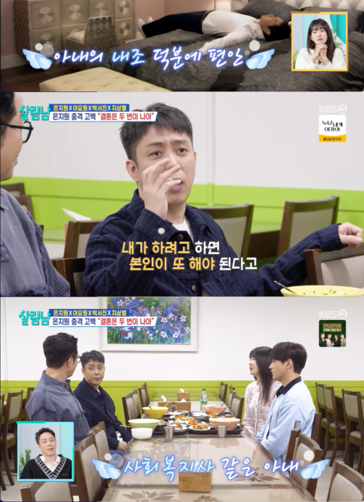29일 오후 방송된 KBS 2TV '살림하는 남자들 시즌2'(이하 '살림남')에서는 지상렬, MC 이요원, 은지원, 박서진이 KBS 구내식당에서 만나 토크를 나누는 모습이 그려졌다.