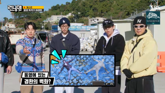 이날 허경환을 ‘통영의 아들’이라고 소개한 유재석은 제작진의 제보에 화들짝 놀라며 “여기에 본인 벽화가 있다는 데 사실이냐”고 물었다.