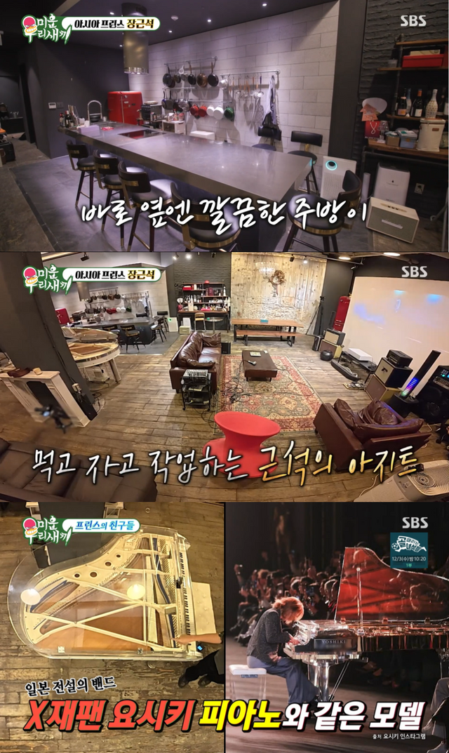 이날 아지트에 들어선 이승기와 이홍기는 연신 감탄을 자아냈다. 특히 이들의 눈길을 끈 건 크리스탈 그랜드 피아노. 이승기와 이홍기는 “X재팬 요시키가 치던 피아노 아니냐”고 물었고, 장근석은 “맞다. 근데 관상용”이라고 말했다.