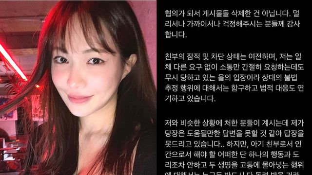 이어 서은우는 여전히 아이의 친부가 연락을 끊은 상태라고 강조했다. 그는 “(아이) 친부 잠적 및 차단 상태는 여전하다”며 “저는 일체 다른 요구 없이 소통만 간절히 요청하는데도 무시당하는 을의 입장에서 상대의 불법 추정 행위에 대해선 함구하고 법적 대응도 연기하고 있다”고 설명했다.