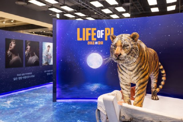 팝업 내부는 태평양 한가운데에서 227일간 이어진 파이와 벵골호랑이 리처드 파커의 여정을 테마로 구성됐다. 입구의 ‘오션존(Ocean Zone)’에서는 실제 호랑이 크기로 제작된 리차드 파커가 가장 먼저 관람객을 맞는다. 위압적이면서도 생생한 존재감을 구현해 시선을 사로잡는다.