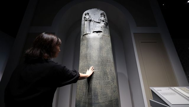 국립세계문자박물관에서 관람객이 함무라비 법전 복제품을 살펴보고 있다. / 연합뉴스