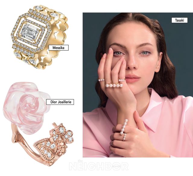 자연을 향한 무슈 디올의 열정에서 영감 받은 라 로즈 디올 컬렉션 신제품. 섬세한 장미꽃, 잎과 가시 모티프에서 꽃에 대한 찬사를 느낄 수 있다. 화이트 펄과 핑크 골드, 쿼츠가 로맨틱한 무드를 극대화한다.