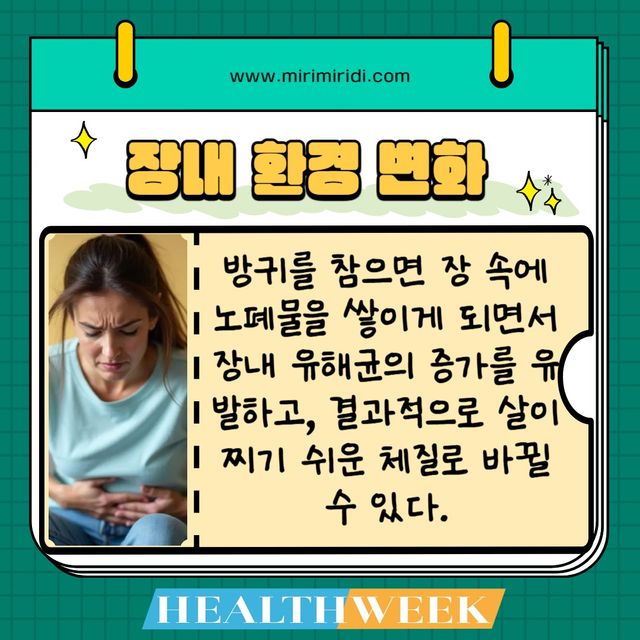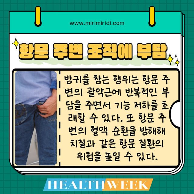 방귀는 우리 몸의 소화 시스템이 정상적으로 작동하고 있다는 자연스러운 생리 현상이다. 이를 심하게, 또는 반복적으로 참을 경우 여러 가지 건강상의 문제가 발생할 수 있다.