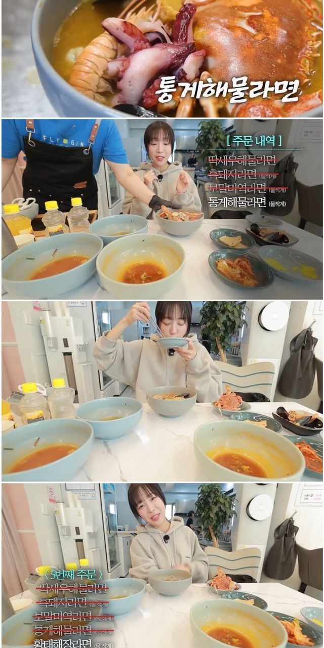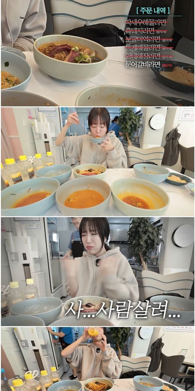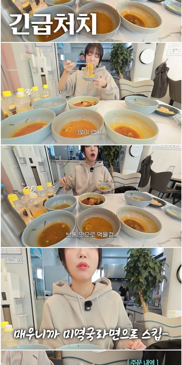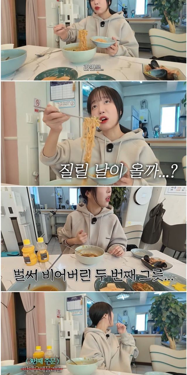"라면을 그만 먹어야겠어요 당분간" (아침에 라면 8그릇을 먹으며)