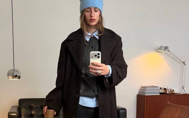 볼륨감 있는 퍼 아우터에 너무 딱 붙는 팬츠를 매치하면 전체적인 룩이 다소 불안정해질 수 있습니다. 이때 여유로운 배럴 실루엣의 화이트 진은 완벽한 균형을 잡아주기에 제격이죠. 화이트 진이 뿜어내는 특유의 여유 덕분에 다양한 아이템을 부담 없이 쌓아 올릴 수 있어 레이어링 자유도 또한 높습니다. 후디스웨트, 허리에 걸친 니트 그리고 버건디 컬러의 니트 비니를 더해도 어수선해 보이지 않고, 오히려 겨울 특유의 풍성함과 자연스러움이 살아나죠. 핵심은 톤 온 톤입니다.
