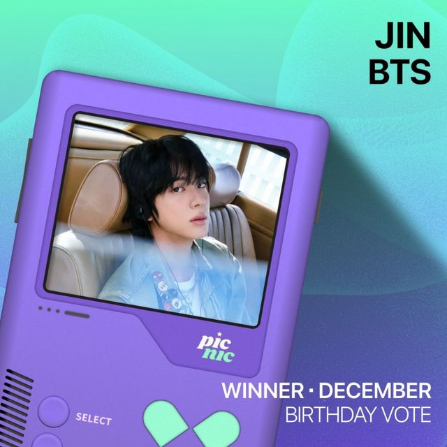 방탄소년단 진은 최종 81만5874표를 얻어 1위에 올랐다. 이 결과에 따라 피크닠에서 제공하는 12월 생일 기념 광고가 12월 5일부터 7일까지 서울 서초구 파미에스테이션 디지털 사이니지에 송출된다. 이번 광고는 팬들이 디자인에 직접 참여해 의미를 더했다.