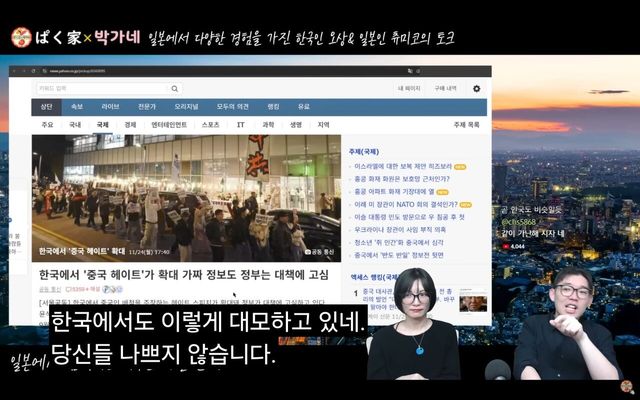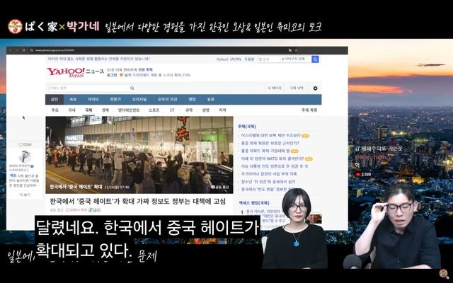 최근 일본 뉴스에서는 한국인의 반중 시위에 대한 보도가 늘고있고