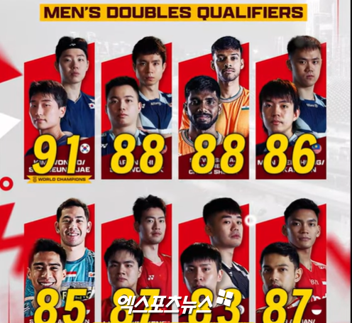 남자복식 세계 1위 서승재-김원호 조도 90점 이상의 높은 점수를 얻어 다른 조를 크게 앞서는 것으로 분석됐다.