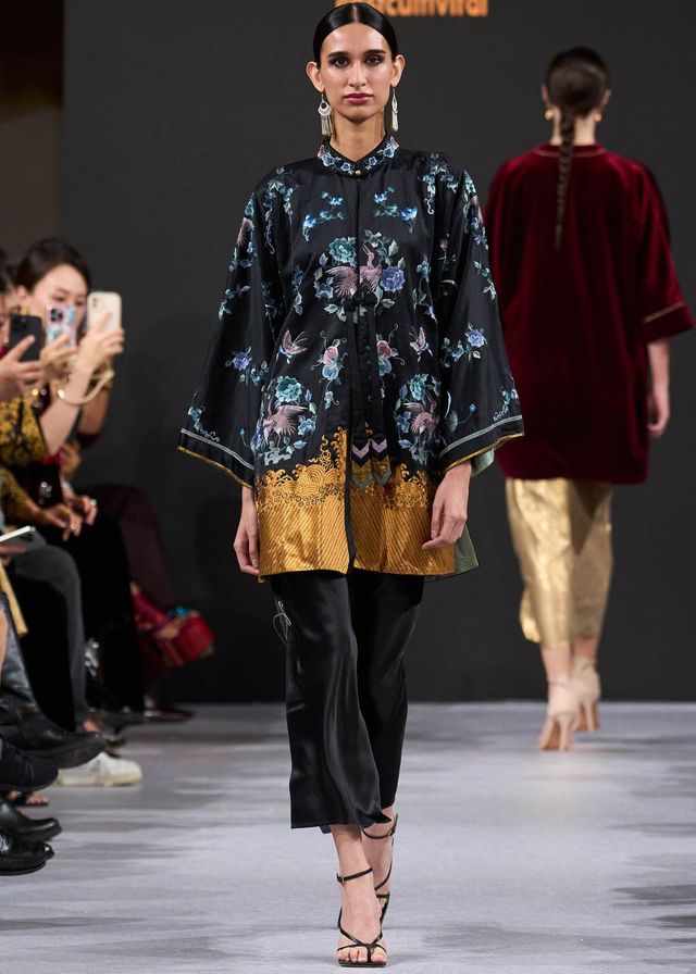 Istituto Italiano Design의 네 학생은 MUSAE Collection을 통해 오르페오와 아이다를 풍성한 소재, 정교한 자수, 극적인 밀리너리로 참신하게 해석햇다. 이어 몰타 출신 디자이너 제임스 디메치는 조형적 감각이 돋보이는 PAPER CRAZY를 선보였고, Ewasechko의 ABSENCE는 브루탈리즘 건축에서 영감을 얻어 각진 컷과 노출된 구조로 몸 자체를 의상의 요소처럼 재구성했다. Kross는 성별 이분법을 넘어서는 디자인으로 퀴어 정체성과 진정한 자기 표현을 기념하며 무대를 확장했기도. 한편 중국 컨템포러리 브랜드 Eastcultivital은 중국의 전통적 유산을 현대적 디자인 언어로 재구성하며 문화적·미학적 깊이를 담은 무대를 펼쳐보였다. 급변하는 글로벌 패션 흐름 속에서도 브랜드는 장인정신과 섬세한 서사를 중심에 두며, 시대를 넘어 세계에 공명하는 동양의 이야기를 전했다.