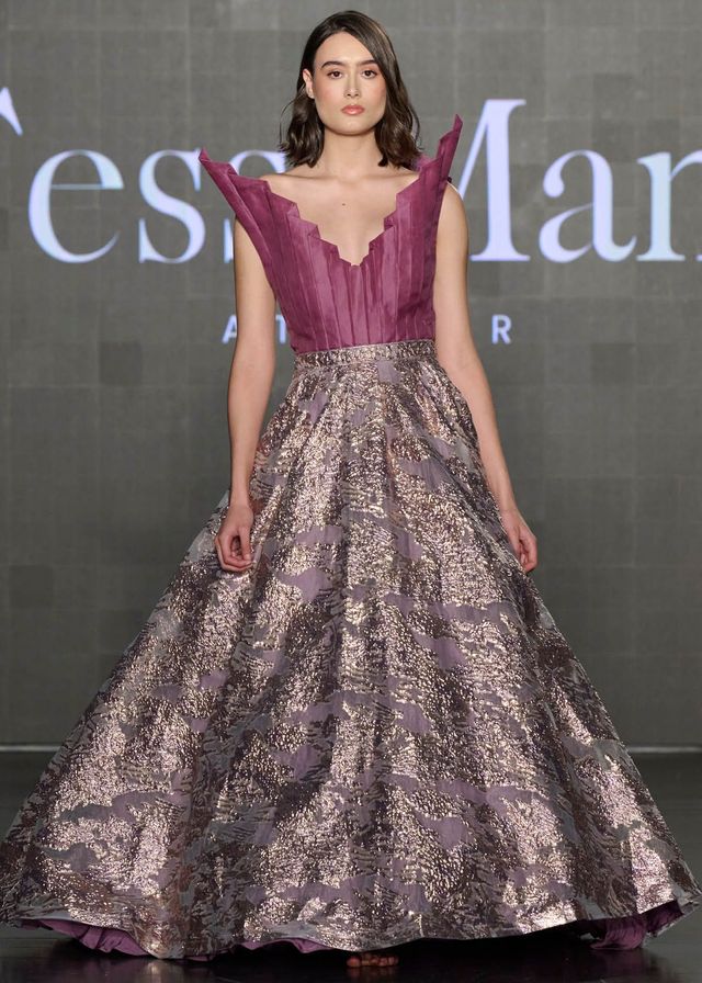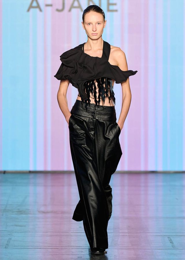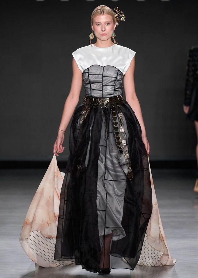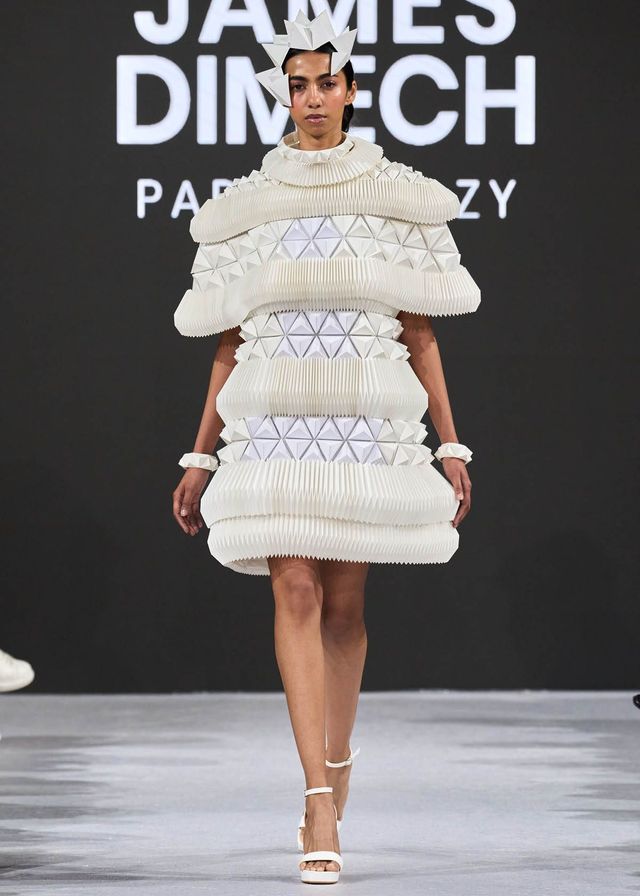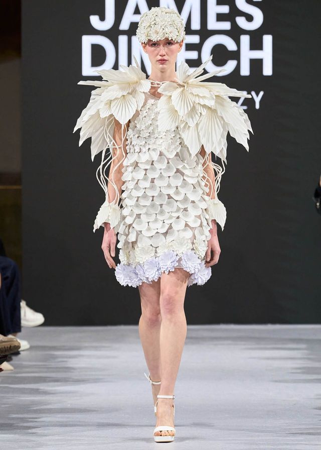 미국 태생의 Tess Mann Atelier는 바로크적 우아함과 현대적 감각을 한데 엮은 컬렉션을 선보였다. 실크 오간자 브로케이드, 수작업 비드 플로럴, 건축적 디테일이 유기적으로 어우러지며, 타조 깃털 소매와 3D 커프스, 금색 라메 안감이 각 룩을 ‘입을 수 있는 예술 작품’처럼 완성한다. 수백 시간에 걸친 정교한 수작업을 통해 하우스의 뛰어난 장인정신과 지속 가능한 쿠튀르에 대한 확고한 헌신을 보여준다. 또한 말레이시 출신 브랜드 A-JANE 컬렉션은 날렵한 컷팅과 미래적 실루엣, 조형적인 레이어링을 통해 ‘소리의 물리성’을 시각화한다. 지속 가능한 천연 섬유와 제로 웨이스트 기법으로 제작되어 내구성과 혁신성을 모두 담아냈으며, 흑백·은색의 모노크롬 팔레트에 네온 그린을 더해 불협화음의 에너지를 ‘소닉 크래시’라는 시각적 순간으로 표현했다.
