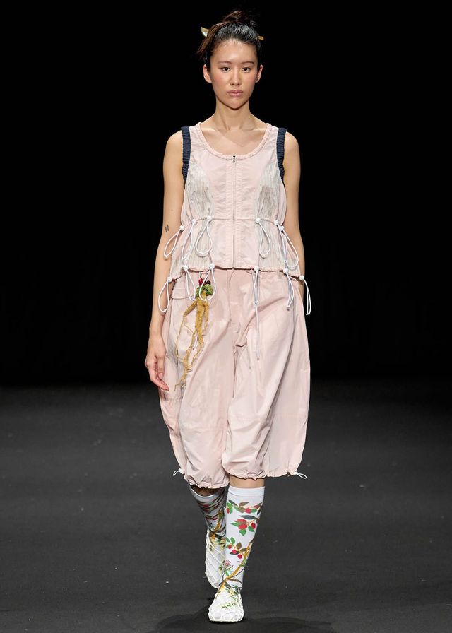 새 시즌 컬렉션 테마 ‘The Healing Lineage’는 라쿠텐 패션 위크 도쿄에서 공개되며, 고대 동양 철학과 현대적 웰니스를 세련되게 결합한 무대로 주목받았다. 전통 한의학에서 착안한 이번 컬렉션은 기(氣)의 균형과 경락의 흐름 같은 개념을 조형적인 실루엣과 컵핑에서 영감을 얻은 엠보싱 텍스처로 풀어냈다. 천연 섬유와 오행에서 차용한 색 조합은 기능성과 감각적인 아름다움을 동시에 부여하며, 피로에 지친 현대인을 고려한 아이템들은 옷을 입는 행위 자체가 하나의 작은 치유 의식이 되도록 했다.