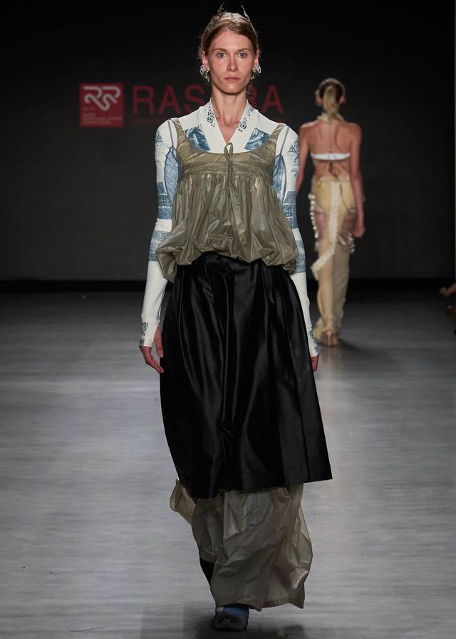 떠오르는 신예들과 함께 혁신과 전통을 겸비한 컬렉션으로 두각을 드러낸 한국 브랜드 RASARA COLLEGE. 전통 퀼팅을 적용해 지속 가능성을 이야기한 이예영(Nubidam), 일상 속 조용한 용기를 패션으로 구현한 박병선(L.T.P.), 성별의 구분을 자유로이 넘나드는 다채로운 디자인의 룩을 런웨이에 올린 양선빈(Via8), 황덕진(HUDJY), 최한별(lilith ryuhwa choi)은 물론 독창적이고 대범한 미학으로 한복을 현대적으로 재해석한 강소진(SOHSA)과 박송이(Gazi)의 빛나는 결과물을 통해 RASARA가 패션의 새역사를 쓸 중요한 영향력을 지닌 칼리지임을 입증해냈다.