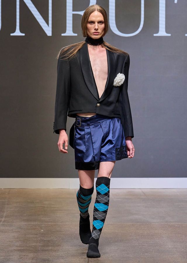 CEDIM은 런던 쇼케이스에서 ‘PLAY’를 발표하며, ‘놀이’를 근본적이면서도 창조적인 행위로 다시 정의했다. 7명의 신예 디자이너들은 각자의 관점으로 놀이를 정체성, 비판, 치유의 프레임 안에서 탐구했고, 이들의 작업은 어린 시절과 성인기의 간극, 침묵과 환상, 규율과 자유, 억압과 상상력 같은 대비들을 섬세하게 비추었다. 그렇게 완성된 PLAY는 감정과 창의성, 그리고 몸을 다시 저항과 회복의 장으로 돌려놓자는 집단적인 제안이 되었다. 이번 쇼케이스를 통해 붕괴에서 새로운 존재로 나아가는 여정을 강렬한 내러티브로 풀어낸 WIJNRUIT. 날카로운 테일러링과 유려한 새틴, 섬세한 레이스, 비틀린 플로럴 모티프가 어우러진 컬렉션은 파괴와 재구성이 균형을 이루는 실루엣을 제시한다. 루마니아 Feeric 패션 위크에서 호평을 이끌어낸 뒤, 이번 런던 무대에서는 한층 깊고 울림 있는 새로운 면모를 보여주었다.