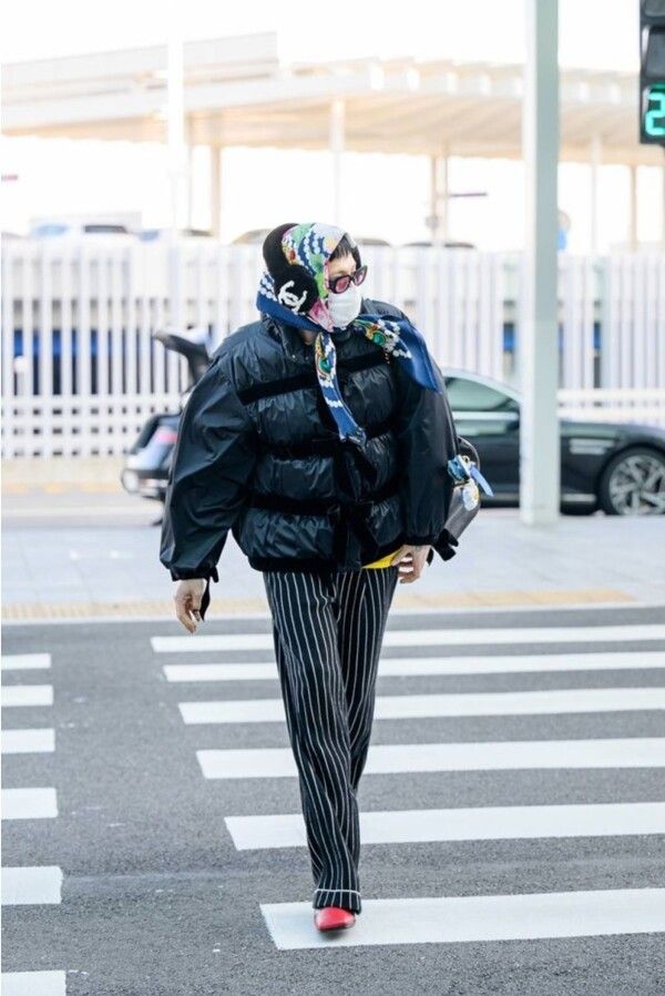 이날 지드래곤이 선보인 스타일링은 완벽하게 '지드래곤 장르' 그 자체였다. 머리 전체를 감싼 러시아풍 실크 스카프와 샤넬 로고 이어머프, 핑크 선글라스의 조합은 한겨울 공항을 거대한 런웨이로 변모시켰다. 몸의 실루엣이 크게 드러나지 않아도 전체 룩이 하나의 캐릭터처럼 완성되는 그의 시그니처 스타일링 방식은 논란 속에서도 흔들림 없는 'GD 패션 세계관'을 다시 한번 증명했다.