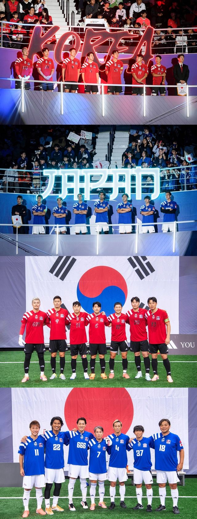 한편 ‘레전드 한일전’ 선수 라인업 역시 화제를 모았다. 한국팀에는 프리미어리그 1세대 이영표, 2002년 월드컵 4강 신화의 주역 설기현, K리그 최다 득점자 이동국, K리그와 J리그에서 활약한 공격수 이근호, 유럽 무대를 경험한 수비형 미드필더 박주호, 2012년 올림픽 한일전에서 쐐기골을 넣은 구자철, K리그 605경기 출전한 골키퍼 김영광이 합류한다.