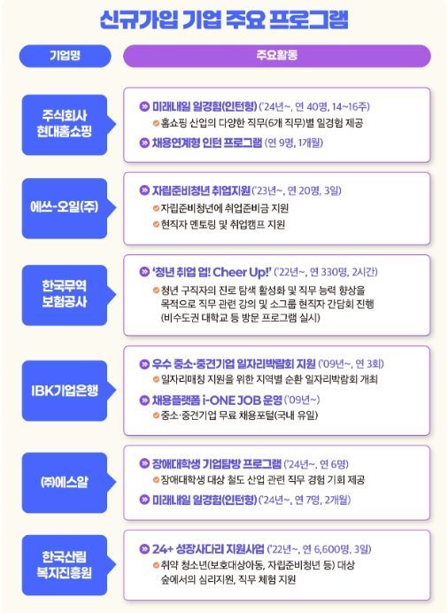 이날 행사에서는 신규가입 기업 엘지유플러스와 우수 활동기업 카카오의 사례 발표가 있었다. 엘지유플러스는 실무형 정보기술(IT) 인재 양성 프로그램인 ‘유레카 소프트웨어 교육과정’ 등을 통해 청년의 취업을 지원하고 있다. 카카오는 현직 경험을 보유한 강사진과 함께 팀 프로젝트 기회 등을 제공하여 청년이 개발자로 성장하도록 지원하는 ‘카카오테크 캠퍼스’를 운영하고 있다.