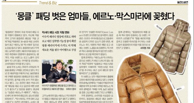 업계 관계자는 “몽클레르는 매출 증가 폭이 둔화하며 브랜드 이미지 피로도가 나타나고 있다”며 “명품 헤리티지를 갖추고 조용한 럭셔리를 지향하는 에르노와 막스마라가 대안을 넘어 후발 강자로 부상할 것”이라고 전망했다.