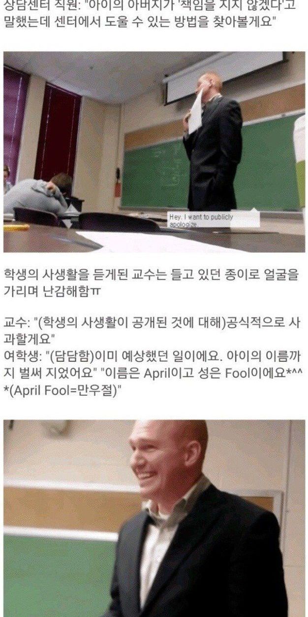 교수님: 교수를 놀리다니 당신의 점수는 A였지만 이제 F입니다