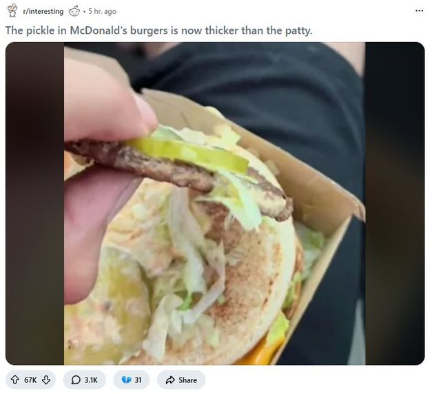 맥도날드 버거의 패티가 피클보다 얇다고 화제(?)