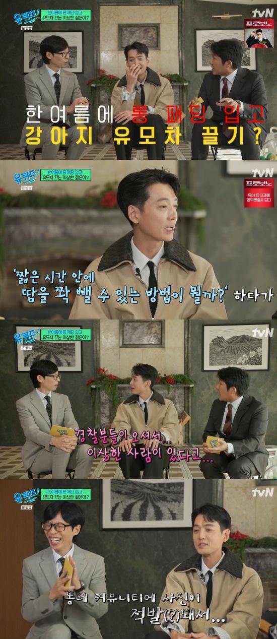 이어 "패딩을 입고 뛰었더니 너무 개운하더라. 그래서 3~4년정도 여름에 패딩을 입고 뛰었다. 동네 커뮤니티에 사진도 올라왔다. 그랬더니 경찰분들이 뭐하시냐면서 정말 궁금해서 오셨었다"고 말해 웃음을 자아냈다.