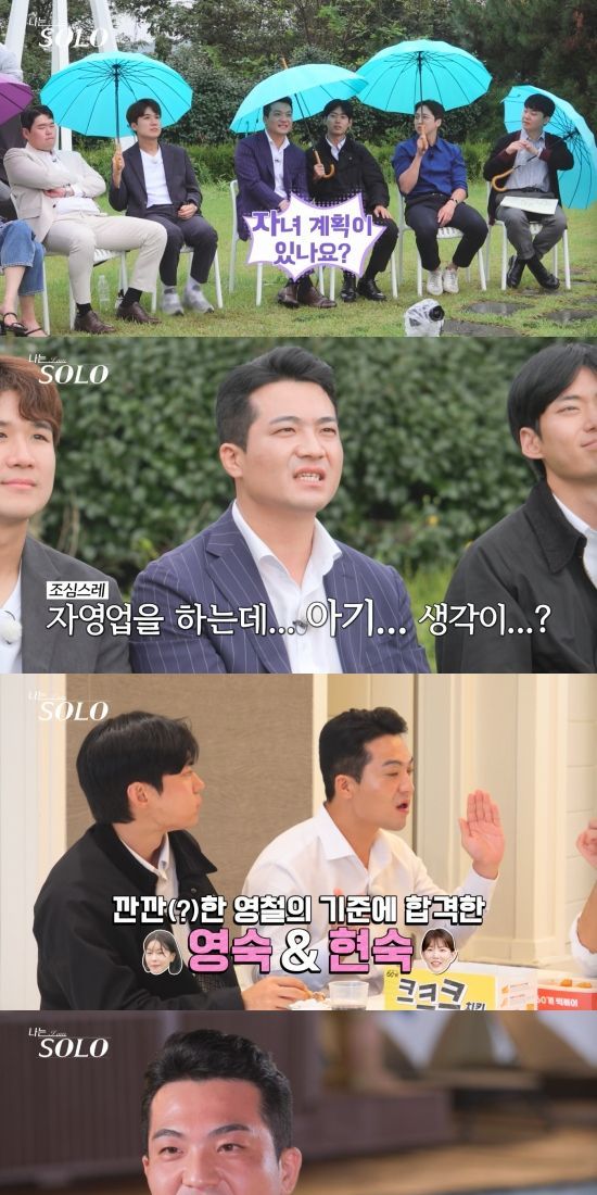 이어 현숙에게는 "엄청 밝으신 것보다 차분하신데 어떨 때 가장 기쁘냐", "자영업을 하는데 아기 생각이 있다면 어떻게 괜찮으시겠냐"고 질문했다. 현숙은 "약국이 잘 될 때가 제일 기쁘다", " 아기 생각은 강하게 있다. 저 대신에 약국을 사실상 운영해 주실 약사님을 뽑아서 인수인계하고 2주를 통으로 비웠다. 출산, 육아하는 동안 근무하실 분을 구해서 (공백에 대한 부분은) 상관 없다"고 답했고, 이에 영철은 흡족해하는 표정을 지었다.