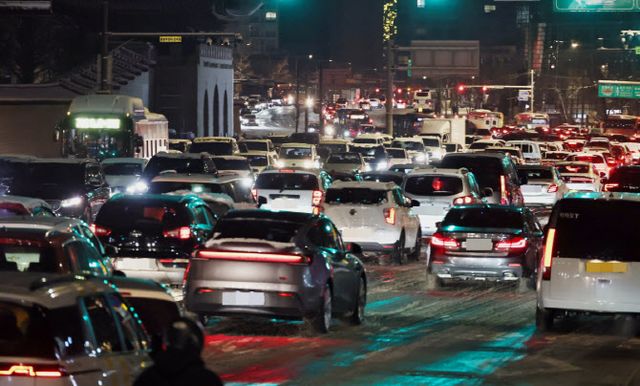 4일 저녁 서울 전역에 2시간 정도 폭설이 내리면서 곳곳에 교통통제와 체증이 벌어졌다. 특히 퇴근길 차량들이 몰려 정체가 더욱 심해졌다.