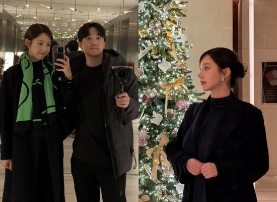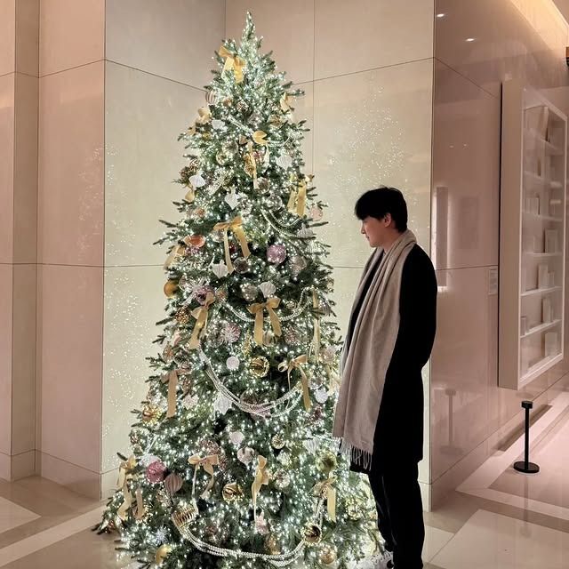 사진 속에는 크리스마스 트리 앞에서 포즈를 취하고 있는 전선욱, 야옹이 작가 부부의 모습이 담겨 있다.