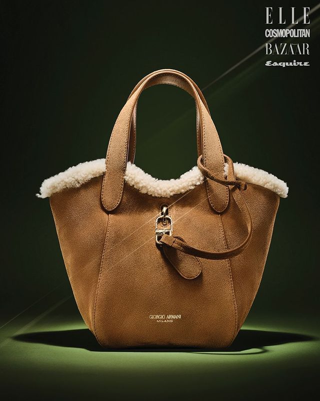 손끝에 닿는 질감이 전하는 따뜻한 여운. 스웨이드와 부드러운 양모로 제작한 2025 F/W 핸드백은 4백만원대 GIORGIO ARMANI.