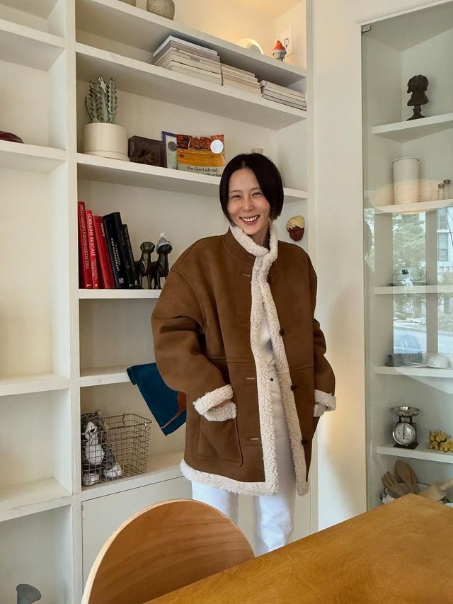 기은세, 따뜻한 카멜 컬러 무스탕 코트