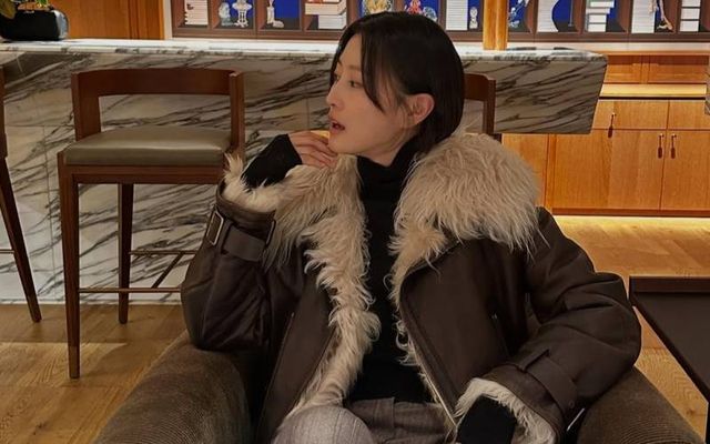 김나영, 분위기 있는 브라운 컬러 무스탕 코트