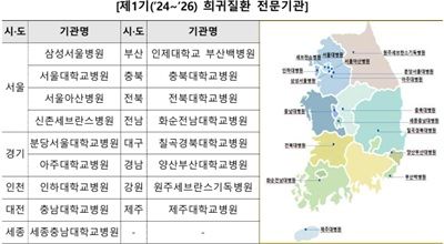 질병관리청은 희귀질환자의 의료 접근성을 높이고 권역 내 희귀질환 진료 역량을 강화하기 위해 2024년부터 전국 13개 시·도에 희귀질환 전문기관 17개소를 지정·운영하고 있다.