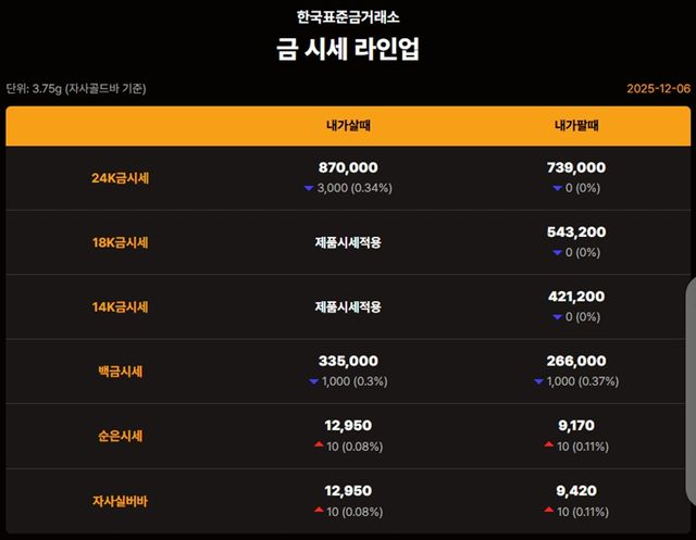 순금(24K) : 매입가 87만 1000원 / 매도가 73만 8000원