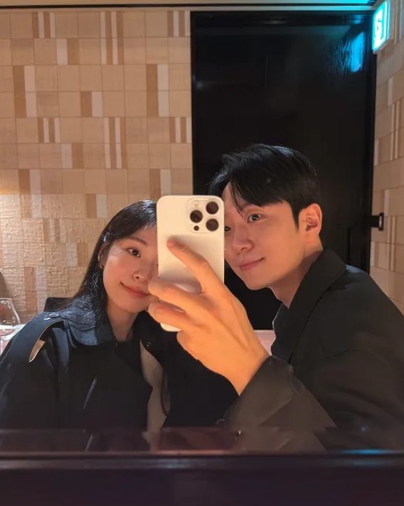 공개된 사진에는 김연아가 고우림과 함께 거울 셀카를 찍는 다정한 순간이 담겼다. 두 사람은 어깨를 나란히 하고 은은한 미소를 지으며 카메라를 응시하고 있는데, 검은색 아우터를 맞춰 입은 듯한 시밀러 룩에서 다정한 부부의 모습이 느껴진다.