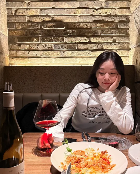 다른 사진에서는 김연아가 와인 잔을 앞에 두고 사색에 잠긴 듯한 모습이 담겨있다. 벽돌 배경과 은은한 조명 아래, 흰색 티셔츠를 입고 긴 생머리를 늘어뜨린 그의 청순하면서도 우아한 미모는 단숨에 ‘여친 짤’을 생성하며 폭발적인 반응을 얻고 있다.