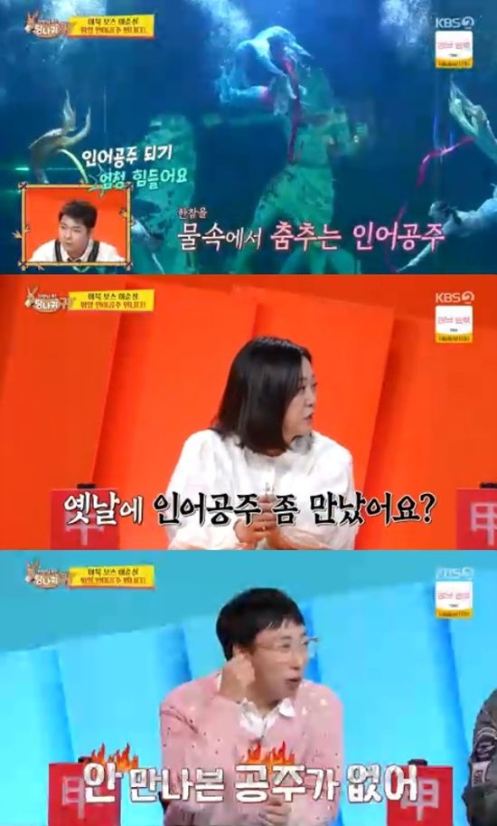이날 이순실은 아쿠아리움 인어공주로 일하는 탈북민 동생 류희진을 만나러 가서 공연을 봤다.