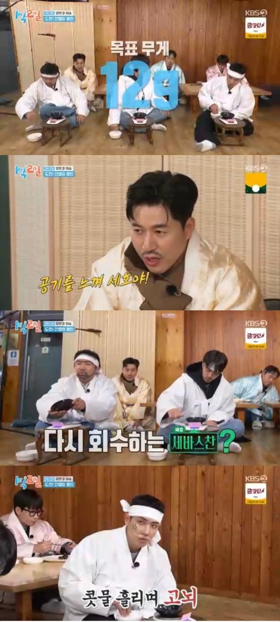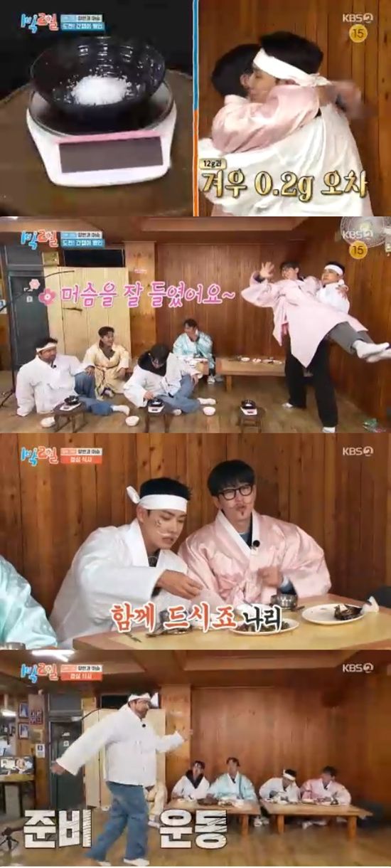 7일 방송된 KBS 2TV '1박 2일 시즌4'에서는 김종민, 문세윤, 조세호, 이준, 딘딘, 유선호가 머슴과 양반 콘셉트의 여행에 나서는 모습이 전파를 탔다.