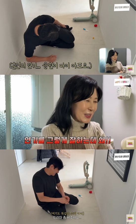 아픈 척 혼신의 힘을 다해 연기하는 김승현을 본 백옥자 여사는 "연기를 그렇게 잘하는데 왜 드라마 같은 데서 섭외가 안 들어오냐"라고 말했다.