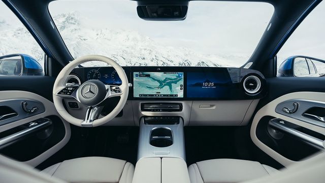 실내는 MBUX 슈퍼 스크린을 중심으로 구성된다. 대형 유리 패널 아래에 10.25인치 클러스터와 14인치 센터 디스플레이, 14인치 조수석 디스플레이가 연속으로 배치됐다. 메르세데스-벤츠 자체 운영체제인 MB.OS가 적용되며, 인텔리전트 클라우드와 연결된 슈퍼컴퓨터를 통해 주요 기능 OTA 업데이트가 가능하다.