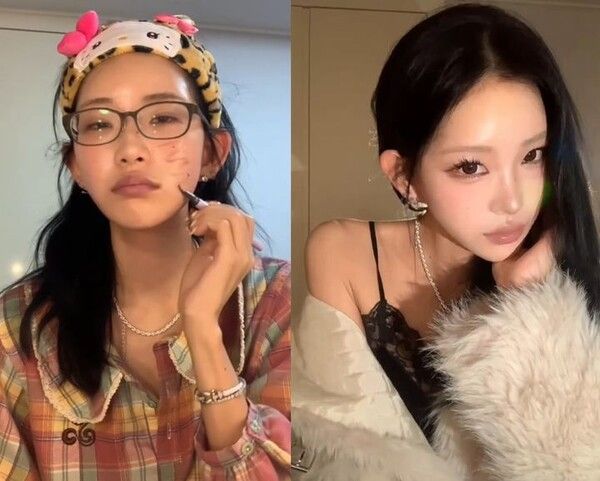 이어 완성된 컷에서는 긴 생머리에 화려한 아이 메이크업, 볼륨감 있는 속눈썹, 누드 톤 립으로 분위기를 바꾼 모습이 담겼다.