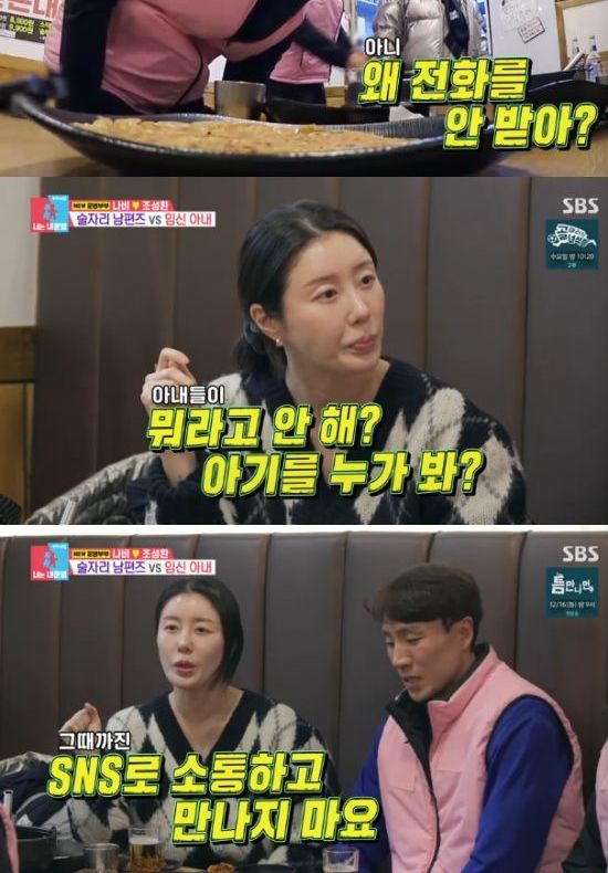 나비는 조성환에게 "조기축구회를 4개를 하고 있지않냐. 몸은 집에 있지만 정신은 다른 곳에 가있다. 축구만 하고 바로 들어오면 모르겠는데, 술까지 마시지 않냐"고 답답해했다.