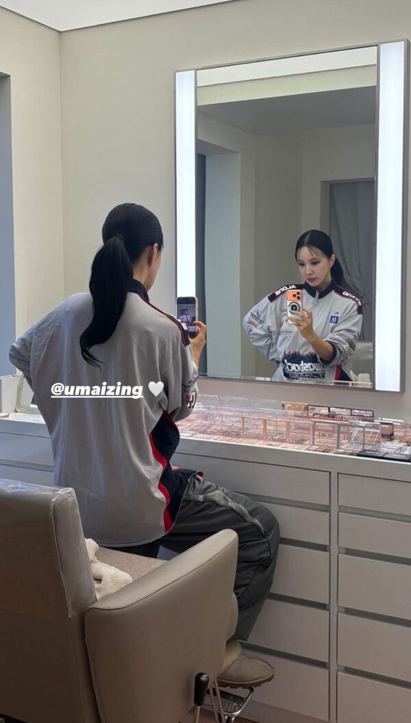 사진 속 엄정화는 거울 셀카를 찍고 있다.