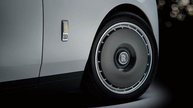 24K 금과 백색 에나멜로 제작한 RR 배지, 25개의 선을 새겨 넣은 휠이 특별함을 더한다.