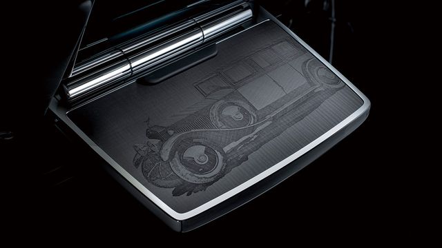 리어 테이블에는 1925년의 오리지널 팬텀 I과 현대의 팬텀 VIII이 정교한 레이저 각인으로 나란히 새겨져 있다.
