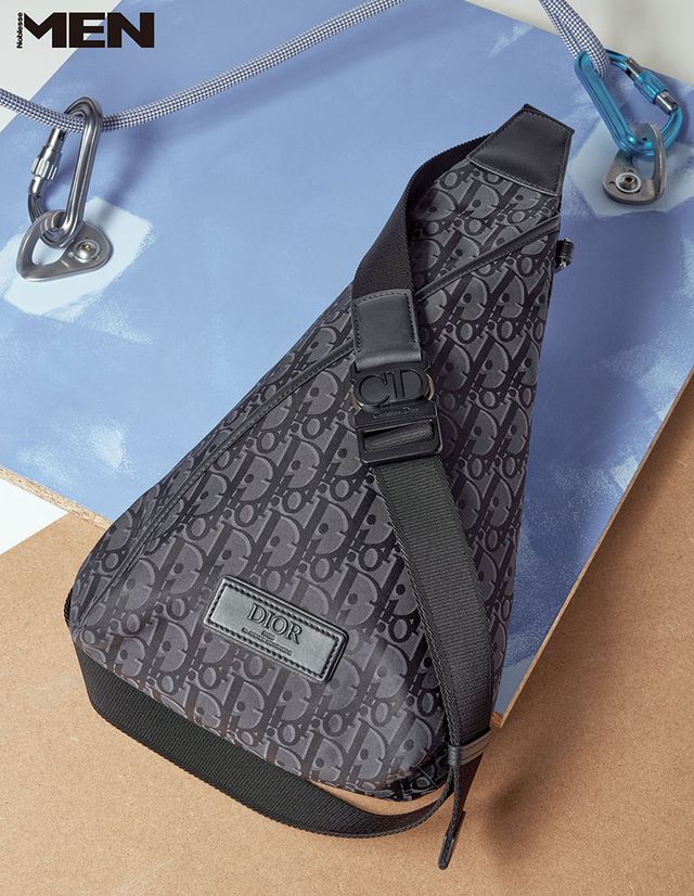오블리크 패턴의 나일론 디올 트랙 지퍼 슬링 백 Dior Men.