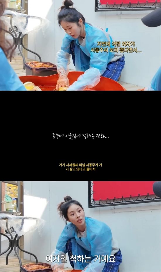 서툴렀던 초반 솜씨와 다르게 늘어 가는 실력을 뽐내며 양념을 묻히던 중 동네 주민들과의 수다가 이어졌고, 이때 한 주민은 "저번에 어떤 여자가 서동주 씨 보러 왔다면서"라고 말을 꺼냈다.