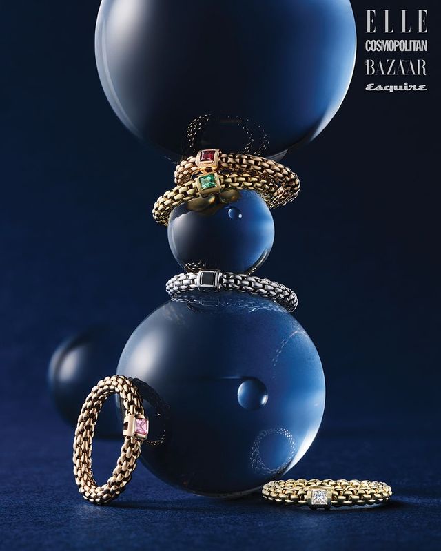모든 형태의 사랑과 두 영혼의 유대를 상징하는 소울 컬렉션. (위부터) 18K 로즈 골드 소재의 루비 플렉스잇 링, 18K 옐로 골드 소재의 에메랄드 플렉스잇 링, 18K 화이트 골드 소재의 블랙 다이아몬드 플렉스잇 링, 18K 로즈 골드 소재의 핑크 사파이어 플렉스잇 링, 18K 옐로 골드 소재의 화이트 다이아몬드 플렉스잇 링은 모두 가격 미정 FOPE.