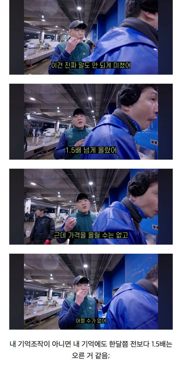 육지에서 겨울이 시작되면서 계절 음식을 찾는 수요가 몰리지만, 실제로 바다의 계절은 육지보다 느리게 진행되기 때문에 아직 방어의 맛이 절정에 이르지 않은 상태임에도 불구하고 가격은 최고치를 기록하게 된다. 이처럼 계절적인 수요와 공급의 불균형이 가격 상승을 이끌고 있다.