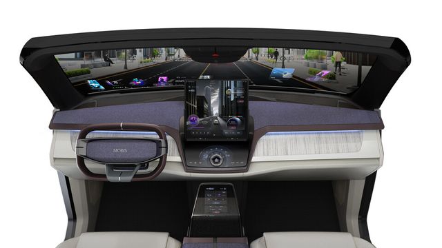 대표 전시품은 콕핏 통합설루션 '엠빅스(M.VICS) 7.0'과 'X-바이 와이어(X-by-Wire)' 통합설루션이다. 엠빅스 7.0에는 전면 유리창에 정보를 투영하는 ▲홀로그래픽 윈드쉴드 디스플레이(HWD) ▲18.1인치 확장형 디스플레이 ▲콘솔 조작계를 적용했다. X-바이 와이어는 기계적 연결 없이 전기 신호로 조향·제동을 제어하고 단일 제어기 통합과 이중 안전장치로 안정성을 강화했다.