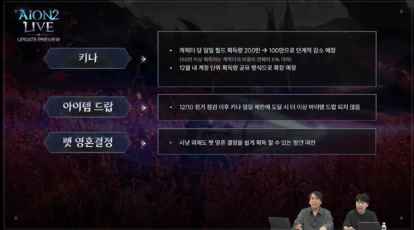 한편, 이날 방송에서는 수호성, 호법성, 마도성, 정령성, 치유성 등 다섯 개 클래스에 대한 밸런스 개선 방침이 전해졌다. 상향 조정 중심의 밸런스 개선이 이어지고 있으며, 검성 및 궁성은 차주 업데이트를 통해 개선을 진행한다는 방침이다.